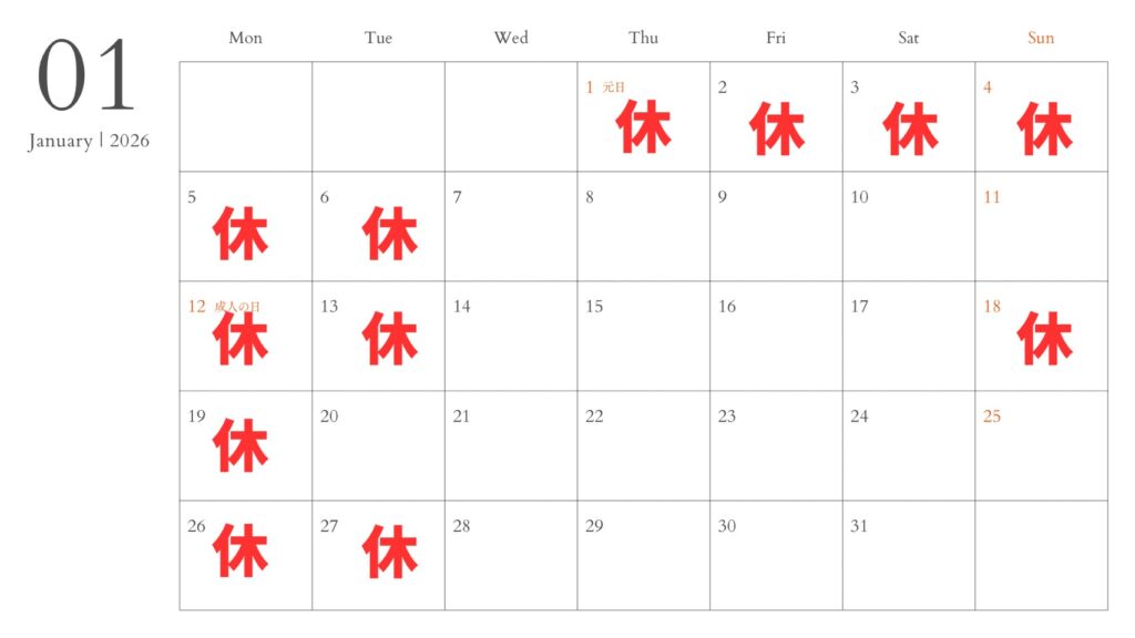 1月の店休日